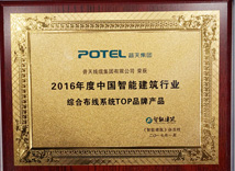 Potel Group was awarded with the title of Top Brand Product of Comprehensive Wiring System of Chinese Intelligent Building Industry in 20152016-03-15At the 9:00 A.M of March 11, 2016, the “2015 China intelligent building industry enterprise TOP brand product awards conference and new product new technology topic forum” was held at the national conference center of Beijing, and the Potel Cable Group w